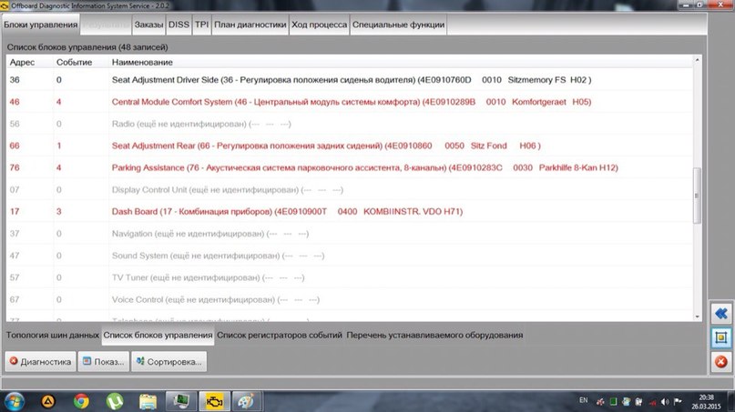 Приветствую уважаемые! После очень большого ремонта (акпп,раздатки,снятие двс,и замены сд-ченджера) odis выдает такую информацию,подскажите с чего стоит начать?!Автомобиль(A8l 2005 года мотор 4,2 bfm,quattro,keyless,) не работает очень много всего:горит давление масла(механически проверенно манометром все в норме),постоянно при включении зажигании работают оба вентилятора,пневмоподвеска не накачивается вообще(принудительно работает), мми выезжает пытается загрузить и через пять секунд обратно заезжает,кнопки подсветки мми не светяться. Кабель vas5054a только вчера подключили,особо в программе пока не разобрался,но вот что показывает: