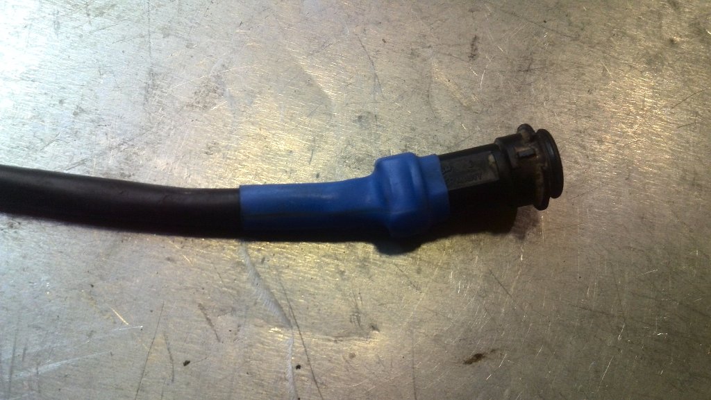 Далее получившийся разъем окунаем в моторное масло( или химию, ну кому как нравится) и одеваем термоусадку. после этого надеваем гофру и ее усаживаем также на термоусадку. Результат на фото