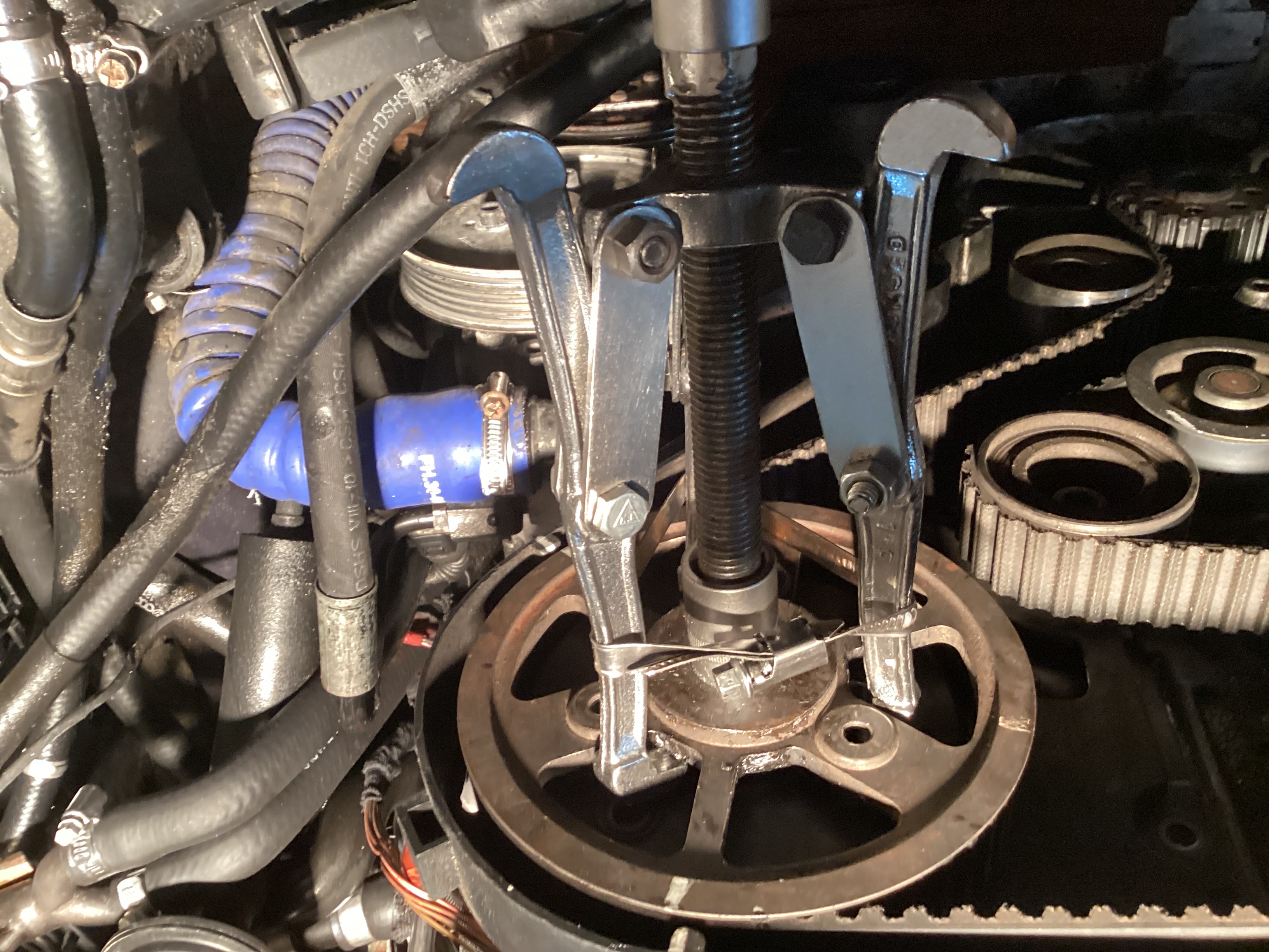 Сначала все шло хорошо — коленвал застопорился, большой болт выкрутился.
