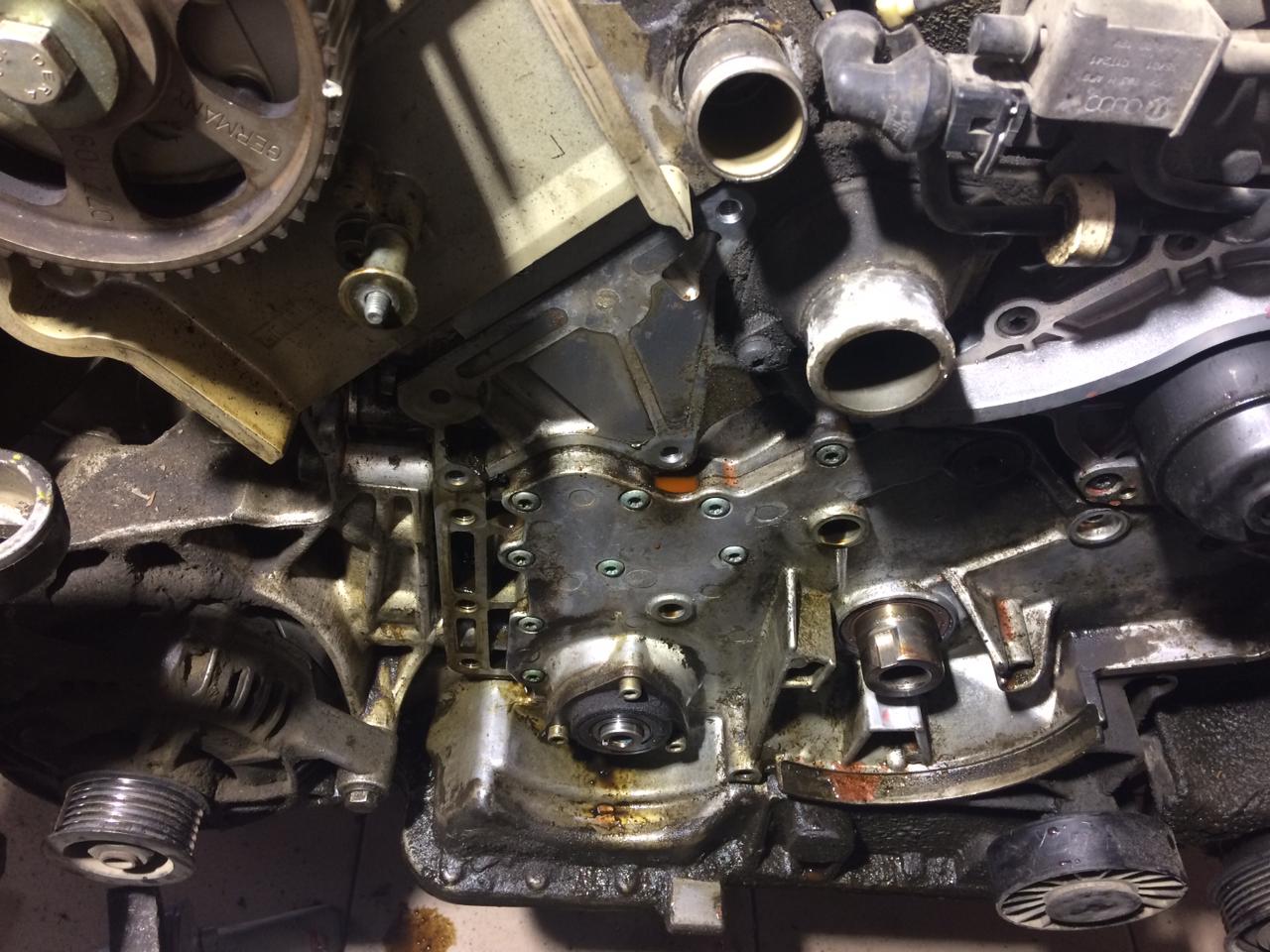 Предыстория такова, обратился в автосервис клиент на А8 с мотором ABZ, с желанием заменить ГРМ и устранить течи по передней части мотора. Вскрытие показало что текут обе прокладки клапанных крышек, очень сильно текут сальники распредвалов и сальник коленвала, ремень ГРМ набрал в себя масла столько что выглядел как памперс) Все выше перечисленное было заменено и клиент благополучно уехал. Через неделю возвращается опять с жалобой на капли масла после стоянки