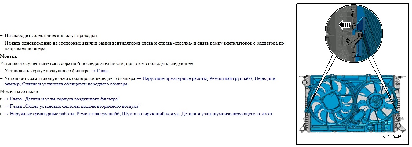 С помощью Васи, выяснилось что не работает правый по ходу движения вентилятор, висит ошибка, тест исполнительный не проходит, левый без проблем. В интернете выяснилось, что вентиляторы безщеточные и ремонту не подлежат. Суть вопроса: как снять кассету с вентиляторами, то что она висит на направляющих-вижу, а вот что надо сделать, чтобы кассета из них вышла? Где стоят фиксаторы? И почему то у меня не получилось отсоединить фишку питания, стопор отодвинул, но фишку не хватает сил отсоединить (может прикипело?) А то впереди лето, хотя прошлое откатал с одним.
